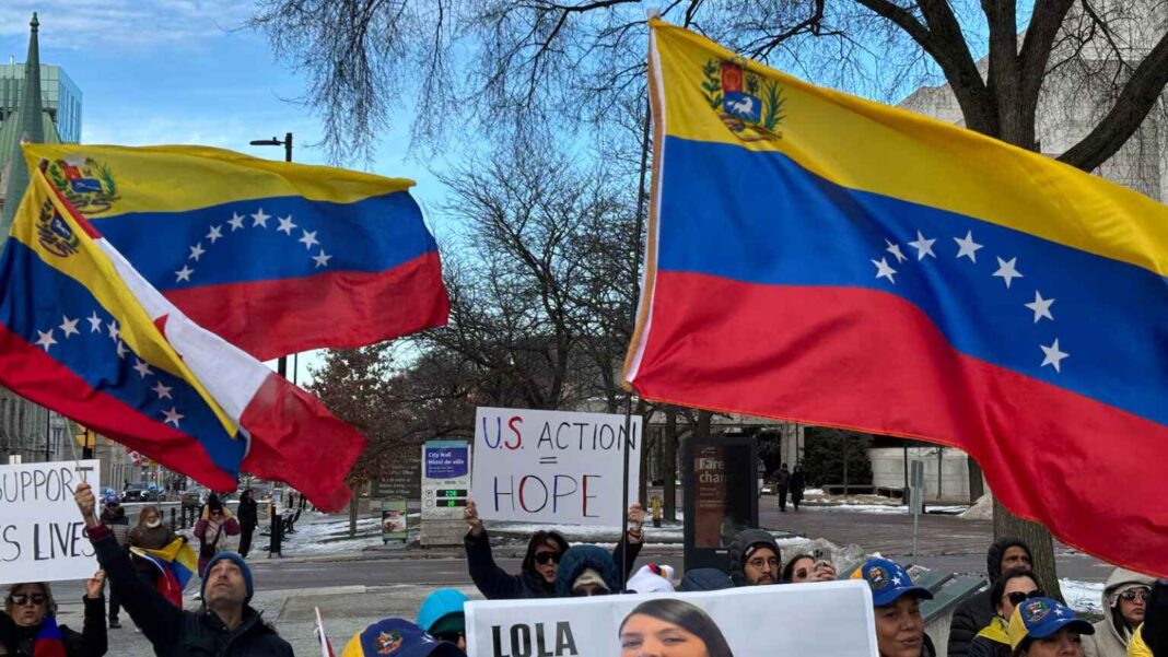 ஒட்டாவாவில் வசிக்கும் வெனிசுலா மக்கள் மதுரோவின் பதவி நீக்கத்தை வரவேற்கின்றனர்.