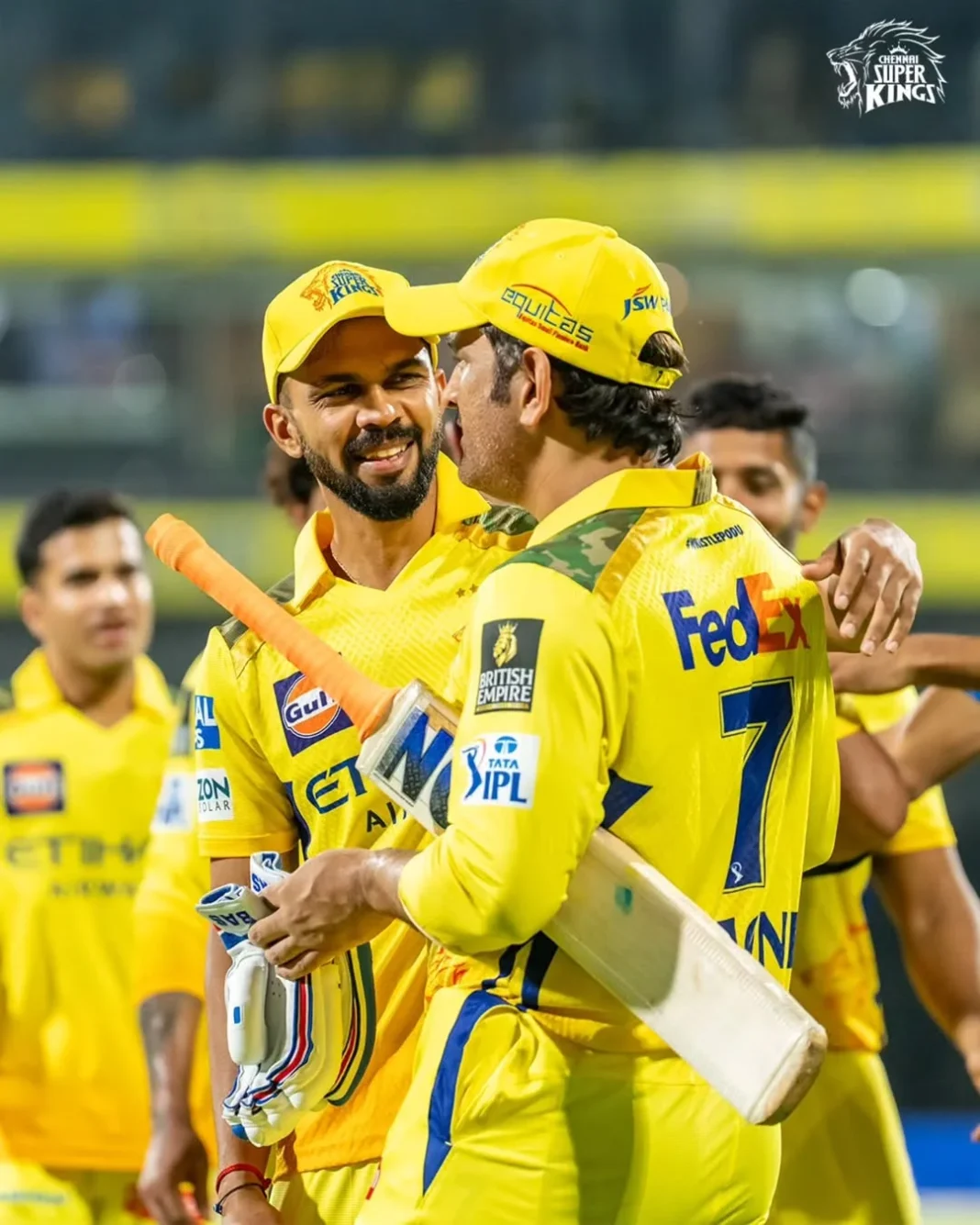 சென்னை அணி சார்ப்பில் சஞ்சு சாம்சன் 32 பந்துகளுக்கு 48 ஓட்டங்களையும் , ஆயுஸ் மாத்ரே 17 பந்துகளுக்கு 38 ஓட்டங்களுக்கும் மற்றும் டெவால்ட் பிரெவிஸ் 29 பந்துகளுக்கு 41 ஓட்டங்களையும் பெற்றுக் கொண்டனர்.