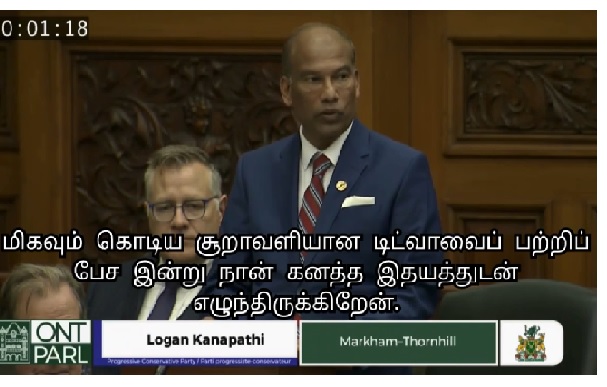 கனேடிய நாடாளுமன்றில் Progressive Conservative Party இன் உறுப்பினர் லோகன் கணபதி டிட்வா சூறாவளியினால் பாதிக்கப்பட்ட இலங்கை தொடர்பான தனது பதிவினை வெளிப்படுத்தியுள்ளார்.