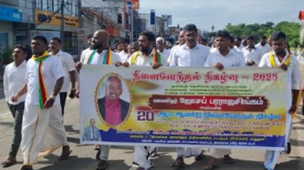 மட்டக்களப்பில் தேவாலயத்தில் வைத்து படுகொலை செய்யப்பட்ட தமிழ் தேசிய கூட்டமைப்பின் முன்னாள் நாடாளுமன்ற உறுப்பினர் ஜோசப் பரராஜசிங்கம் 20 ஆம் ஆண்டு நினைவேந்தலையிட்டு இன்று வியாழக்கிழமை (25) மட்டக்களப்பு காந்தி பூங்காவில் இருந்து மாநகரசபை மண்டபம் வரை படுகொலைக்கு நீதி வேண்டி ஆர்பாட்டம் இடம்பெற்றது.