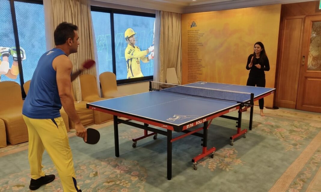 இந்நிலையில், தோனியுடன் டேபிள் டென்னிஸ் விளையாடும் புகைப்படத்தை அவரது மனைவி சாக்ஷி சிங் பகிர்ந்துள்ளார்.
