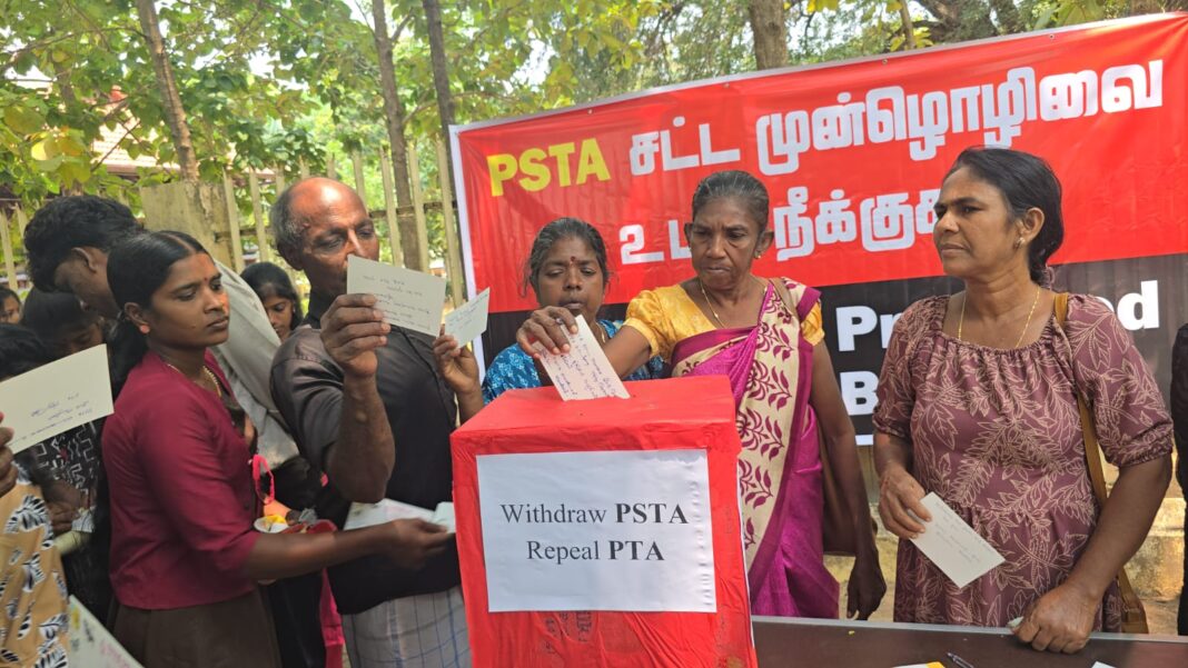 தற்போது நடைமுறையிலுள்ள பயங்கரவாதத் தடைச் சட்டம் முழுமையாக நீக்கப்பட வேண்டும் என்றும், முன்மொழியப்பட்டுள்ள புதிய பயங்கரவாத எதிர்ப்புச் சட்ட வரைவு தேவையற்றது என்றும் வலியுறுத்தி இந்த நடவடிக்கை முன்னெடுக்கப்பட்டது.