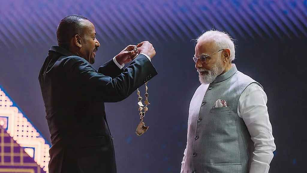 ஆப்பிரிக்க நாடான எத்தியோப்பியாவின் மிக உயரிய ‘கிரேட் ஹானர் நிஷான் ஆப் எத்தியோப்பியா’ விருதினை பிரதமர் நரேந்திர மோடிக்கு வழங்கி அந்நாட்டு பிரதமர் அபி அகமது அலி கவுரவித்துள்ளார்.