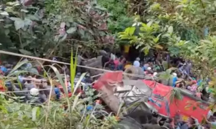 எதிரே வந்த வாகனத்திற்கு இடமளிக்க முயன்றபோது, ஓட்டுநரின் கட்டுப்பாட்டை இழந்த பேருந்து சுமார் 25 அடி பள்ளத்தில் வீழ்ந்து கவிழ்ந்துள்ளது.