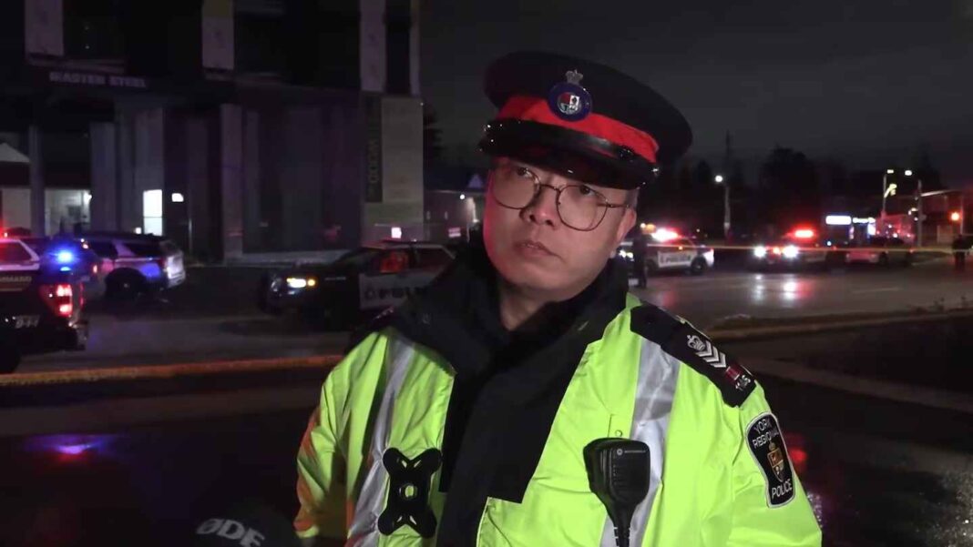 York Regional Police say two police cruisers were damaged and are no longer operational following the takedown.